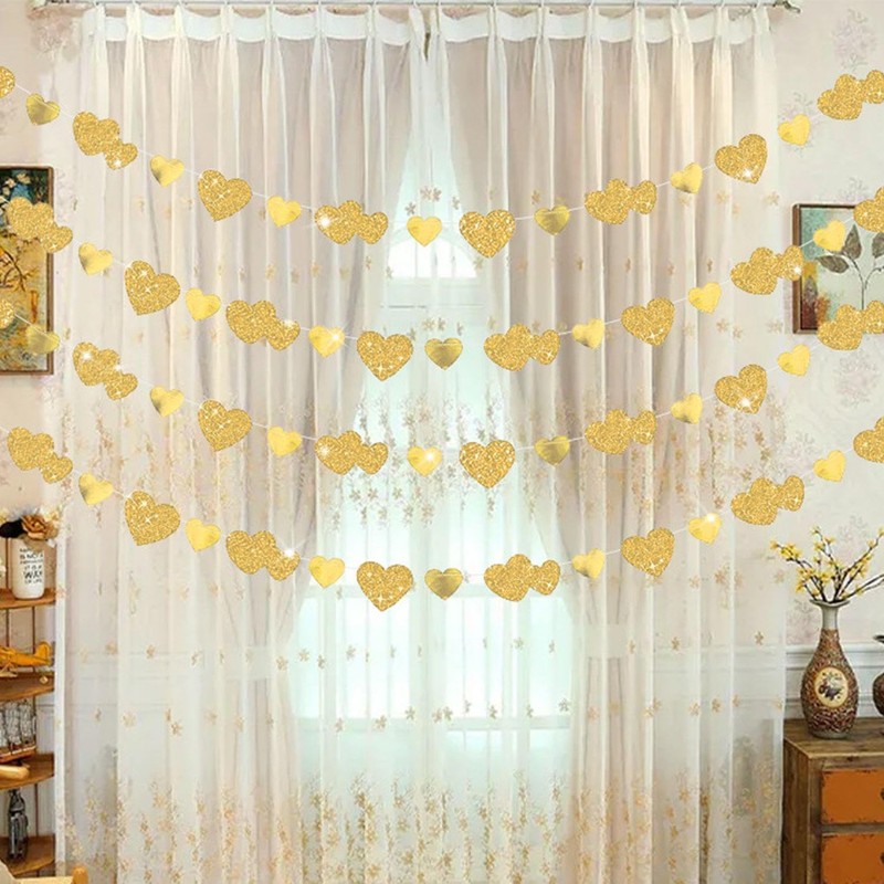 1. This decorative set contains 4 pieces gold glittering heart-shaped raffia and 2 pieces multi-coloured love raffia pendants, suitable for weddings, dances and other celebrations.