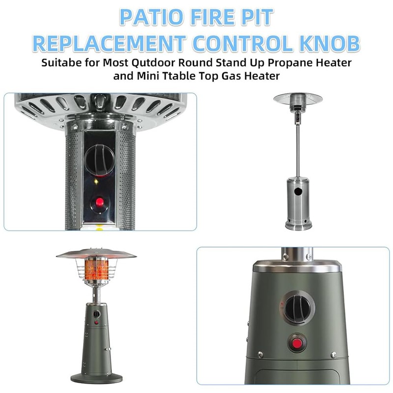-These versatile heater knobs are engineered to fit a wide array of outdoor equipment. Whether you have a round stand-up propane heater, mini heaters, outdoor pyramid patio heaters, fireplaces, fire pits, or gas grills, our universal design guarantees a perfect fit. Simplify your outdoor heating experience by ensuring that your appliances are outfitted with the right knobs for optimal operation.