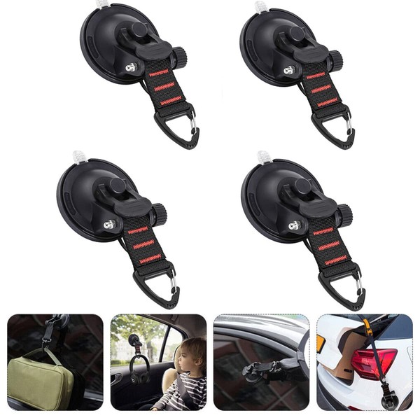4 Pieces Heavy Duty Suction Cup Anchor with Securing Hook Tie Down, Camping Tarp Accessory as Car Side Awning, with Securing Hook Strong Power for RV Awning Boat Camping Trap