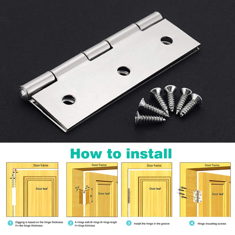 - Size and package content: 3-inch stainless steel hinge 75mm * 49mm, package content: 4 pieces of stainless steel hinge, including corresponding screws, make your use happy