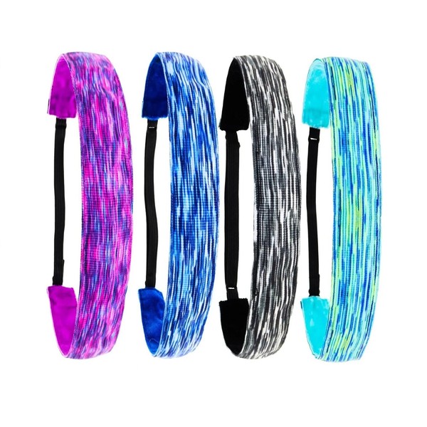 4 pieces of adjustable hair tie, gradient headband, sports anti slip headband suitable for girls (Purple+Blue+Grey+Lake Blue, One size)
