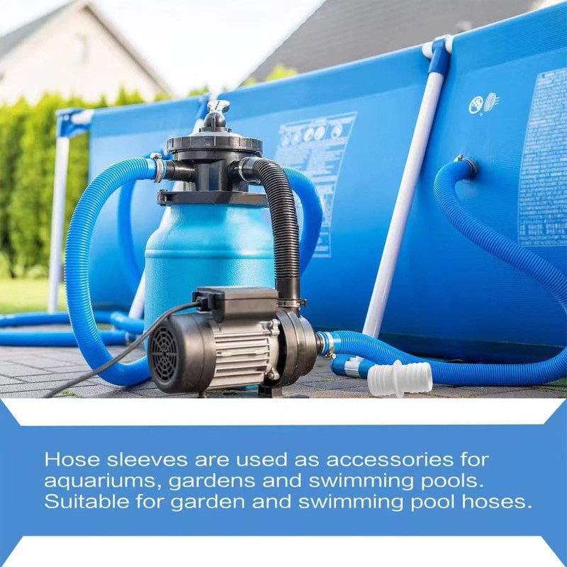 • Hose connector 38 mm to 38 mm: 4 x pool hose connectors for hoses with 38 mm or 38 mm outer diameter + 8 x stainless steel hose clamps, double hose nozzle pool accessories pack of 4, plenty of space for everything you need when connecting your hose.