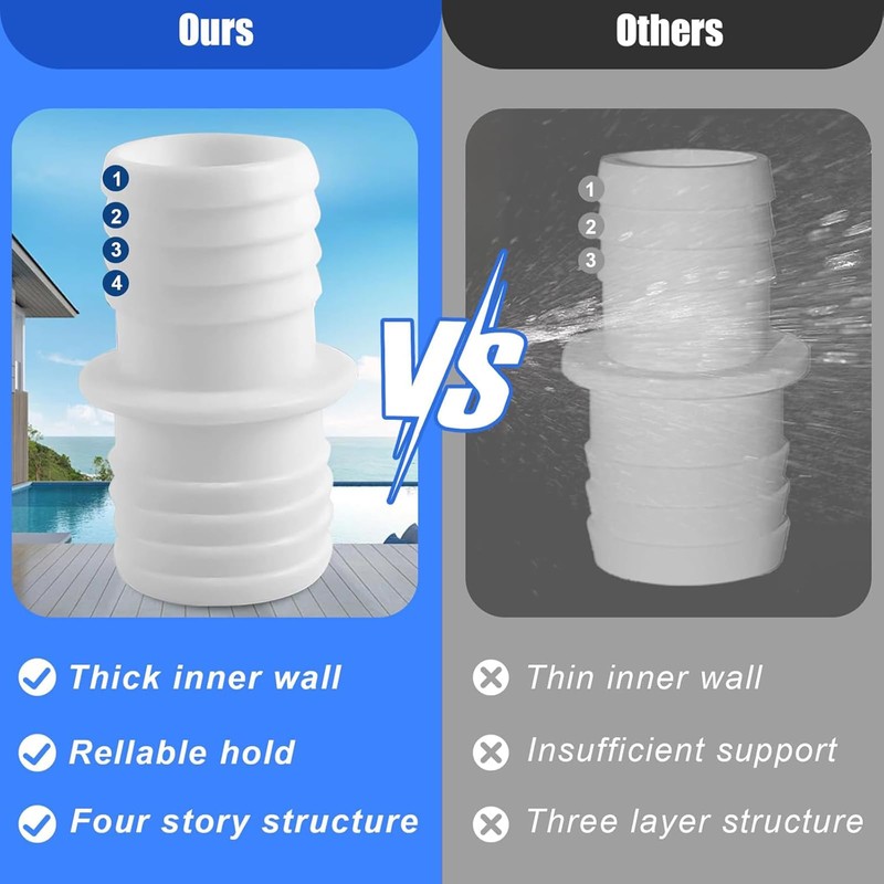 • High quality: the pool hose connectors are made of durable plastic, ribbed hose connector robust, the hose clamp is made of stainless steel and attaches the connections, so there are less leaks. Our stainless steel hose clamps promise maximum stability.
