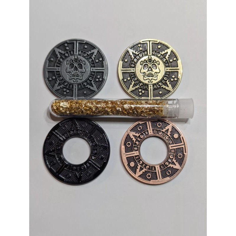4 PIRATES GOLD METAL POKER CHIPS NEW SILVER GOLD COPPER BLACK 2 FREE GOLD FLAKES