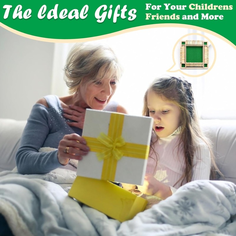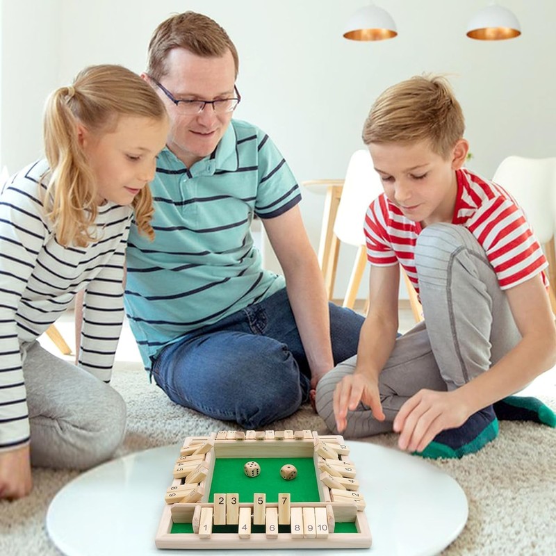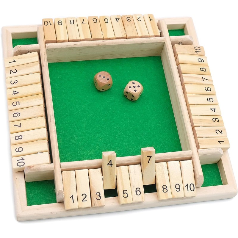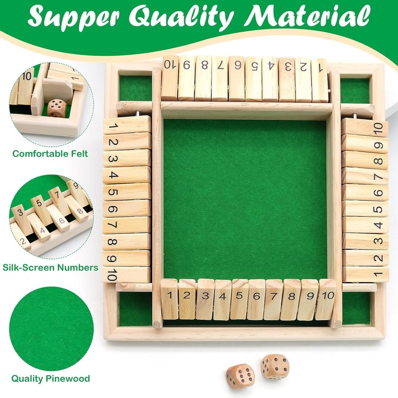4 Player Shut The Box Game, Wooden Board Game, Classic Dice Game, Classic Mathematical Games, Suitable for Families, Gatherings, Bar Games, Green