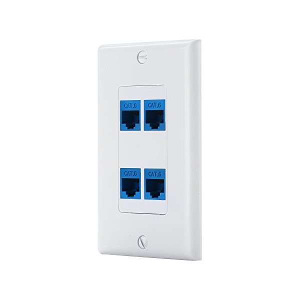 4 Port Cat6 Ethernet Female to Female Decorative Wall Plate in White