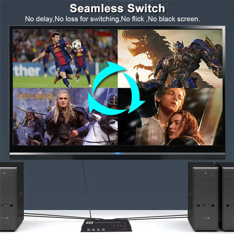 4 Ports KVM HDMI Quad Multi-viewer Switcher 4K HDMI Screen Divider Switcher with USB KVM 4 in 1 Out Seamless Switch for 4 PC