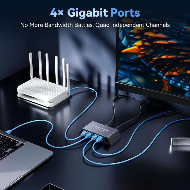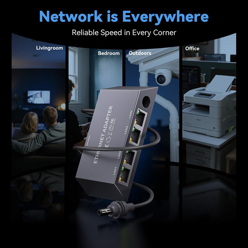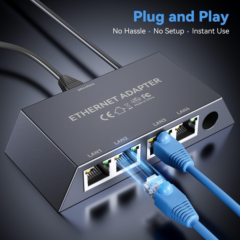 4 Ports Starlink Ethernet Adapter for Gen 3 and Starlink Mini, Connect 4 Wired Devices at Once Up to 1Gbps