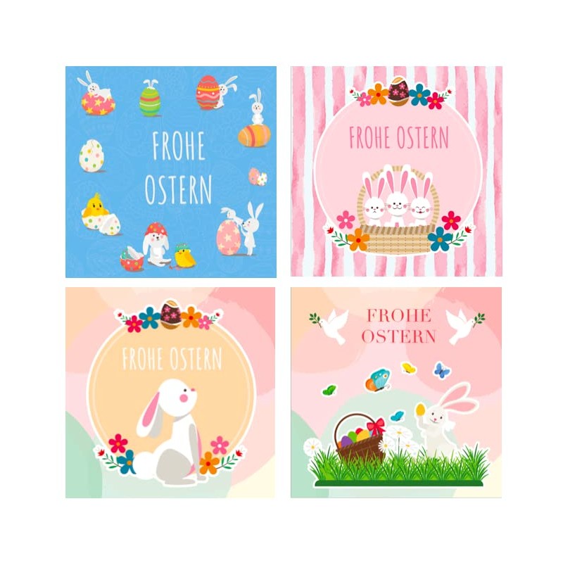 4 Premium Easter Cards with Envelopes (Folding Cards) 14.8 x 14.8 cm, Easter Card with Funny Motifs Happy Easter, Easter Greetings with 10 Different Designs