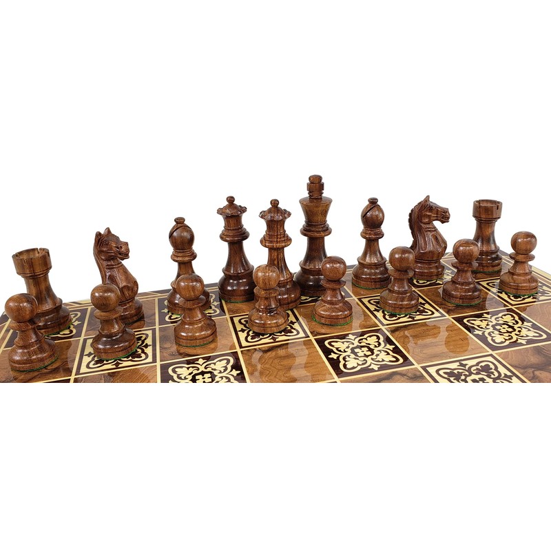 4 Queens - 3 3/4" King Staunton Supreme Knight Acacia and Black Chess Men Set - NO Board
