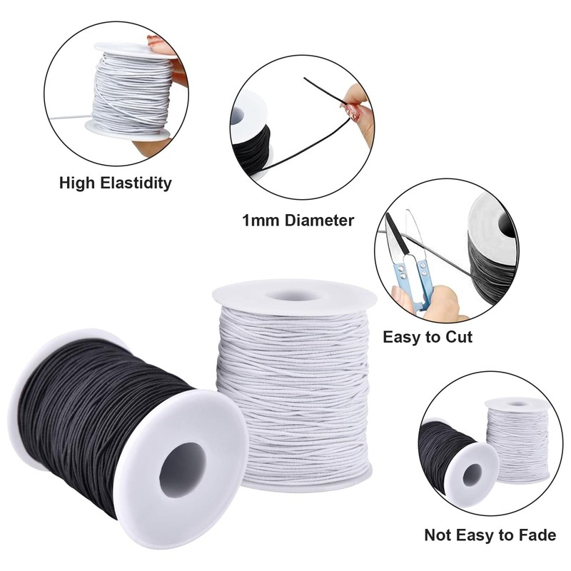 - đ§”ăGENEROUS LENGTH & SATISFACTION GUARANTEEă Each order includes 4 rolls (2 black + 2 white) of 1mm elastic string, with 55 yards per rollâplenty for endless crafting! If our elastic cord doesnât meet your expectations, contact usâwe value your feedback!