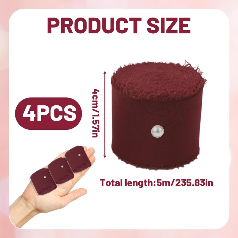 4 Rolls Burgundy Ribbon, 5M x 4CM Maroon Ribbon for Gift Wrapping, Wedding Decorations, DIY Crafts
