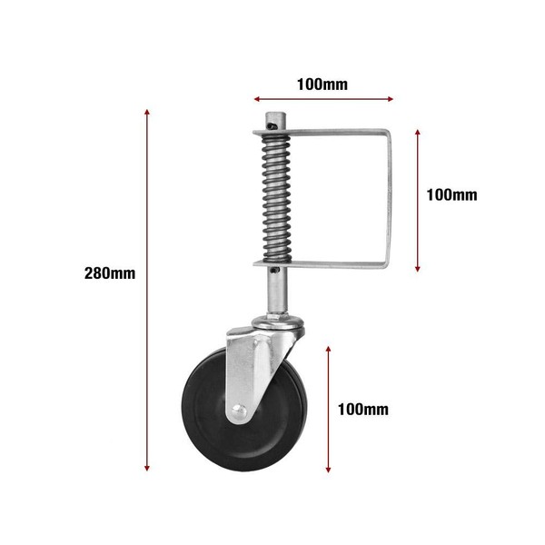 4" Rubber Gate Wheel Spring Loaded Swivel Caster Heavy Duty 220lbs Load Capacity