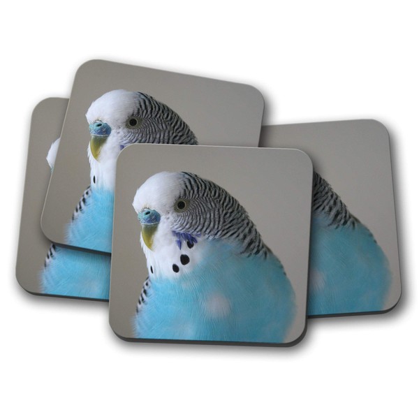 4 Set - Pretty Blue Budgie Coaster - Budgerigar Bird Parrot Pet #14623