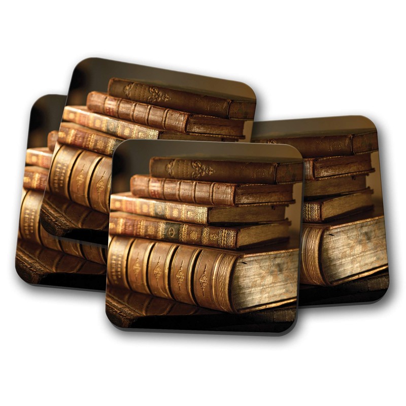 4 Set - Vintage Books Coaster - Reading Book Worm Library Writer Fun #15139