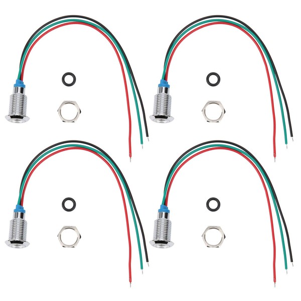 4 Sets Common Cathode Electrode Round LEDs, 10 mm Pre-Wired Two-Tone LED Waterproof Indicator Light 3-6 V (Red and Green)