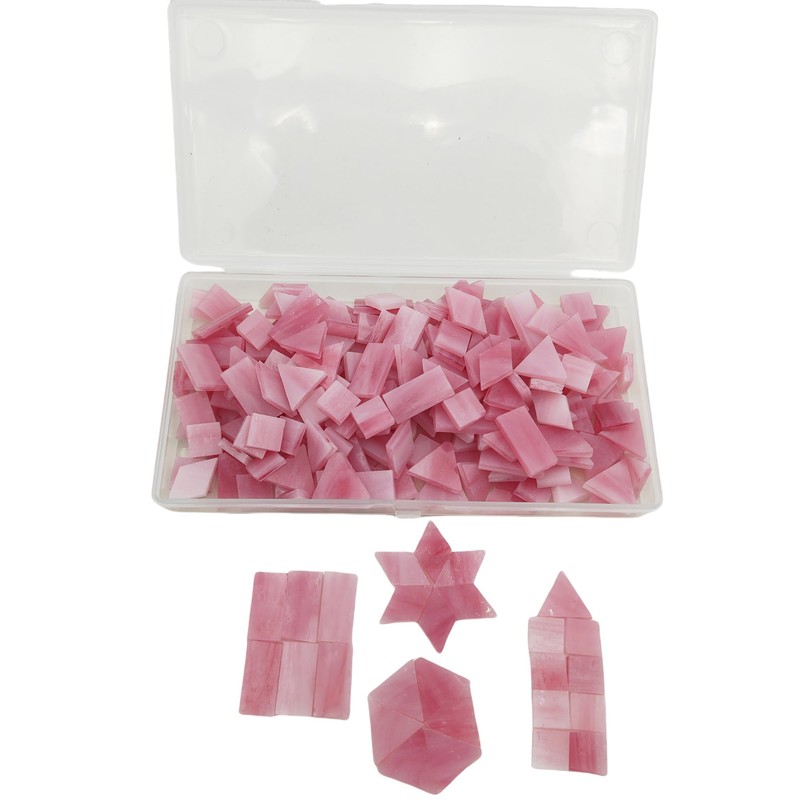 4 Shapes Mixed Stained Glass Mosaic Tiles for DIY Crafts,200PCS Rectangle/Triangle/Square/Diamond Transparent Mosaic Pieces for Art Crafts and Home Decoration (Pink)