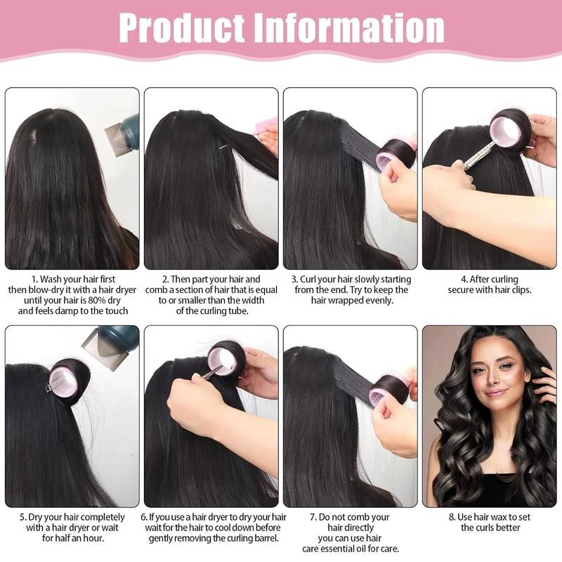 - Easy to Use: Part your hair, keep it slightly moist, wind the ends around the roller and slowly roll it up, then secure it with a clip. You can also use a hair dryer to style it. After blow-drying, be sure to gently remove it in the direction of the curls without pulling hard.