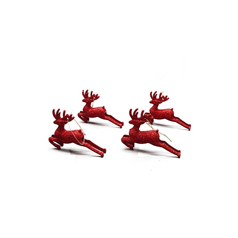 4 Small Red Festive Christmas Sparkling Glitter Reindeer Decorations