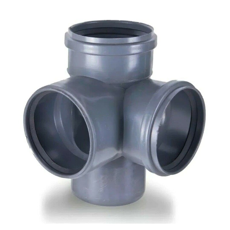 4" Soil Pipe 110 mm - Double Corner Branch Fittings 90° Sewer Waste Grey PVC Plumbing Triple Socket Junction |