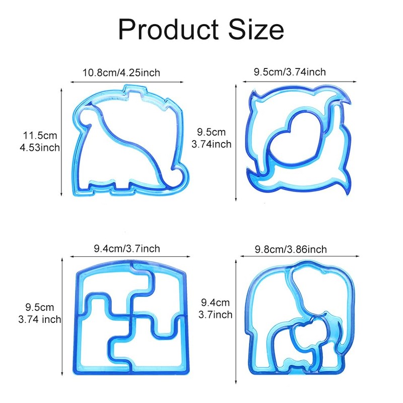 - 【4 FORMEN】 Sie erhalten 4 Ausstechformen, darunter Dinosaurierform, Delfinform, Puzzleform und Elefantenform, die süß genug sind, um die Aufmerksamkeit der Kinder zu erregen und ihren Appetit zu steigern, ohne wählerische Esser zu sein.