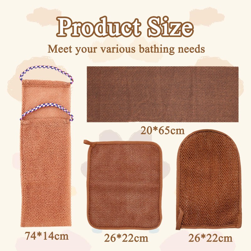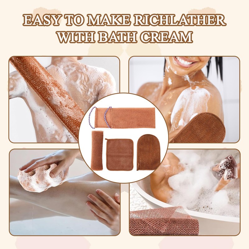 💧The set includes 4 styles of african body scrubber to help you clean all parts of your body.
