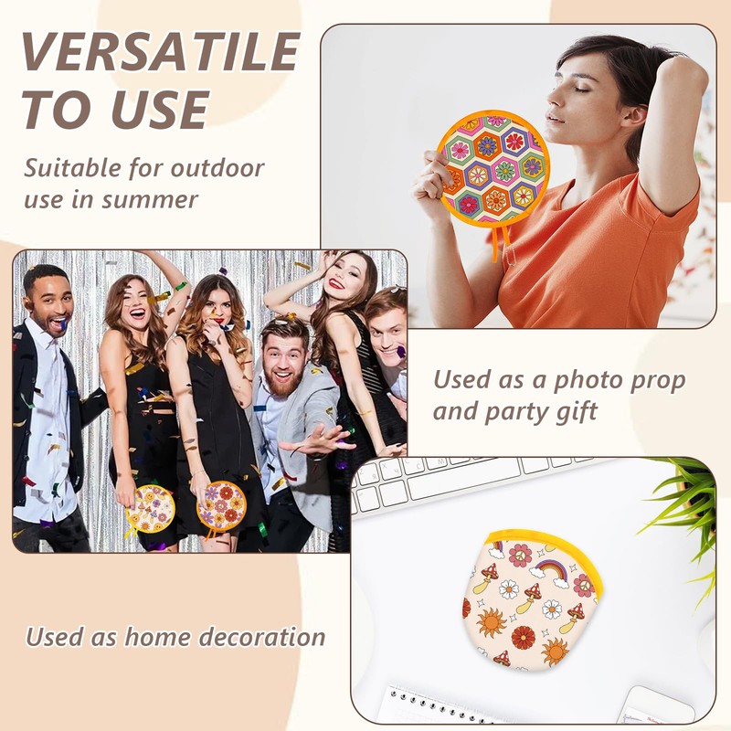 - 【Pop Up Hand Foldable Fan Set】the folding disc fans with Retro Hippie,Besides for summer,our Portable Collapsible Fan Foldable Fan are also perfect decorations for your home,Fashion and beautiful, hand-crafted Japanese-style, let you have different styles, and the unique cute Retro Hippie pattern must brings a different joy to the holiday party!
