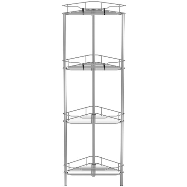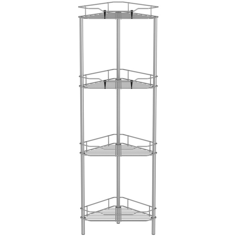 4 Tier Floor Standing Corner Shower Caddy Organizer Shelf with Hooks, Bathroom Shelves Stand Rack, Gray