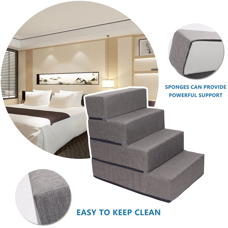 4-Tier Pet Foam Stairs for Tall Beds and Couches, for Small to Medium Pets, Gray