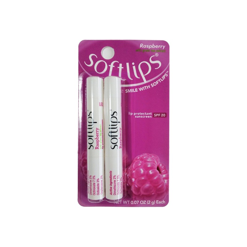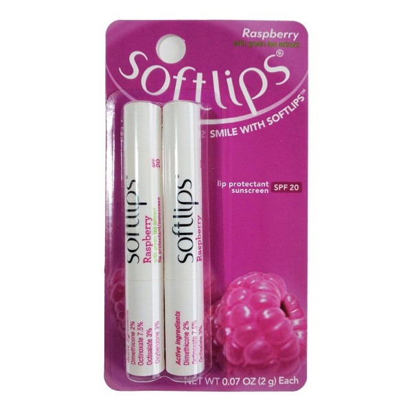 4 Twin-Packs Softlips Lip Protectant Balm, Sunscreen SPF 20, Raspberry