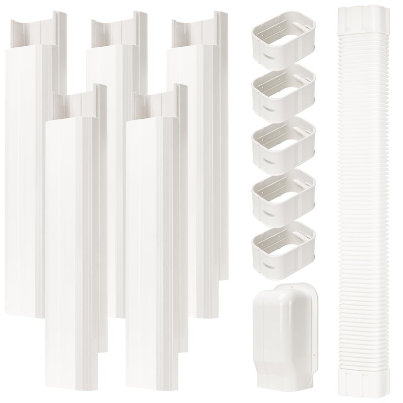 - 【Great Value Set 4“*7Feet】Our line cover is totally sized with 4’’*7 feet, including 5*1.41 feet straight ducts longer than similar products in the market. This PVC line set also includes most integrated parts, more parts than others. With our combination, no need to buy other parts separately.