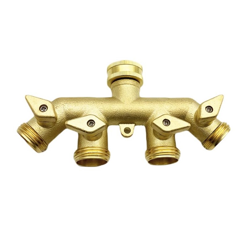 4 Way Brass Tap Connector,Hose Pipe Splitter 3/4 Inch Hose Connector with Individual Shut Off/ON Valve for Gardening Irrigation