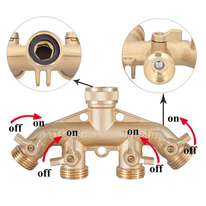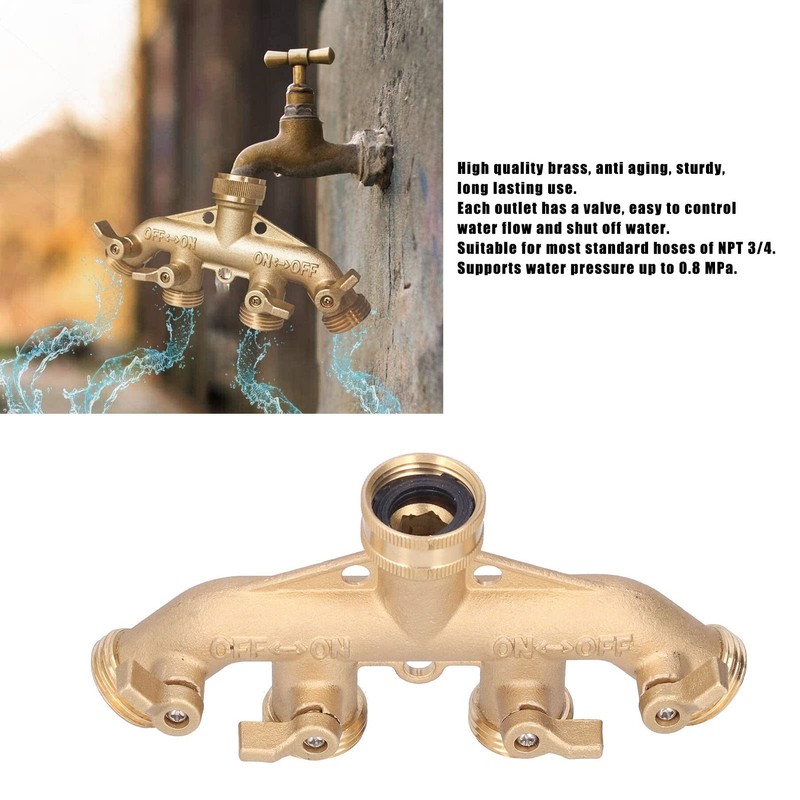 - Premium Brass: The 4 way tap hose splitter adopt quality brass, anti aging, sturdy and provides you with long lasting use.
