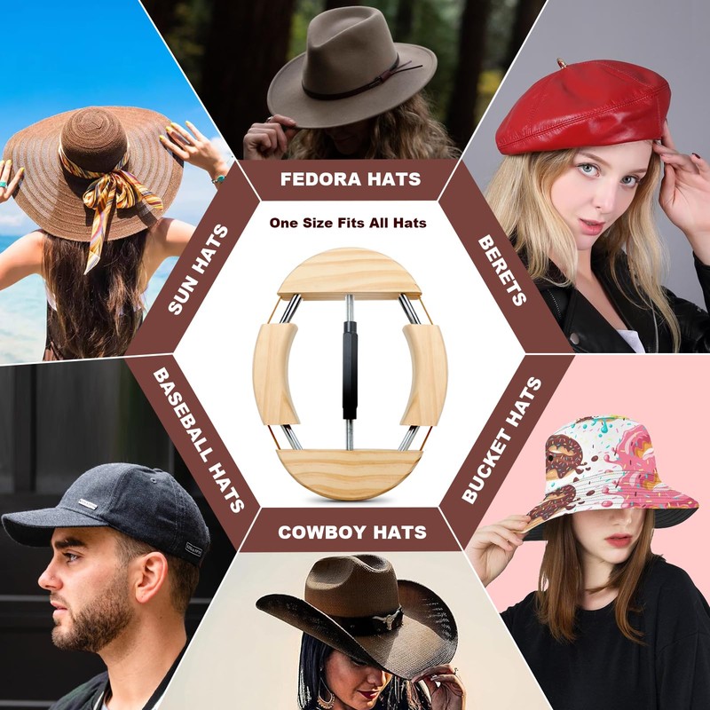 - 4 Way Hat Stretcher, XL Hat Stretcher for Fitted Hats, Hat Stretcher for Cowboy Hats, Hat Jack Stretcher Fits All Caps, Hat Extender Widener Shaper - Solid Wood, Heavy Duty of Hat Enlarger