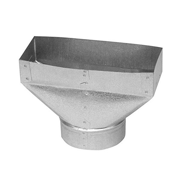 - Used for in-line transition from round pipe or insulated flexible duct to a register or grille