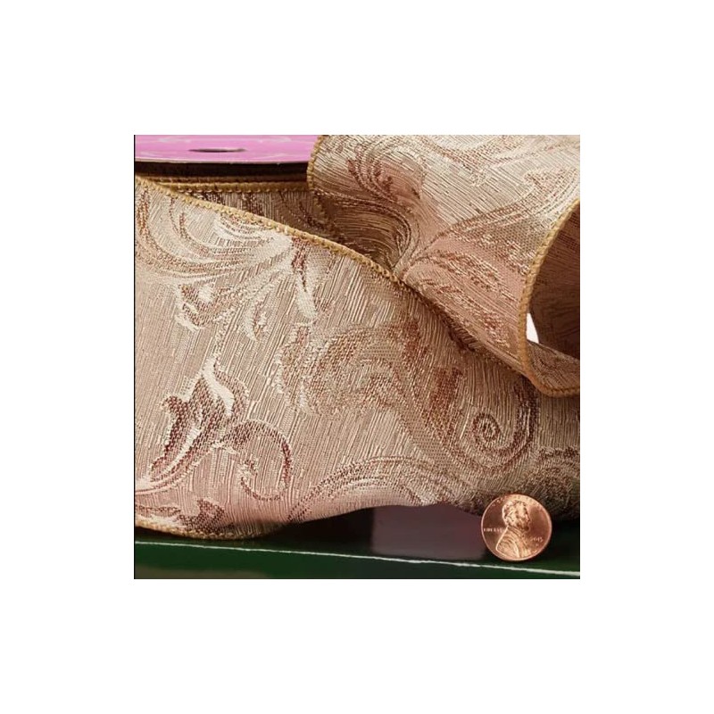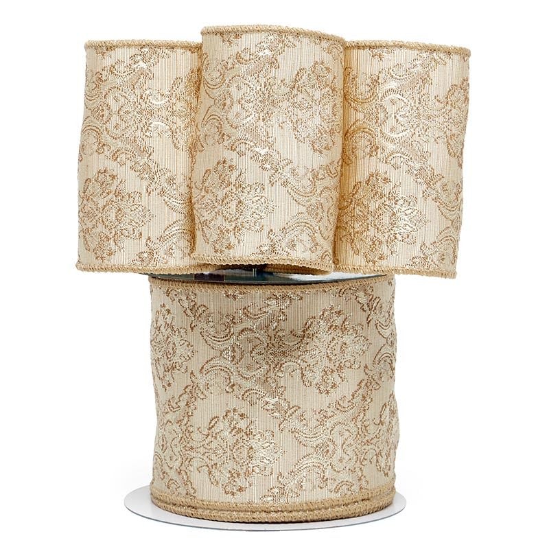 4" X 10 Yards Light Gold Heavy Woven Damask Ribbon Christmas