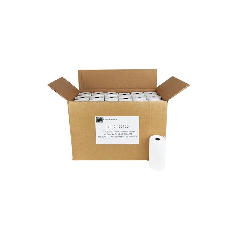 4" x 120' (1/2" core) Thermal Paper - fits Brother RJ4230, RJ 4250, RJ 4040 and RJ4030 printers - 36 rolls/case