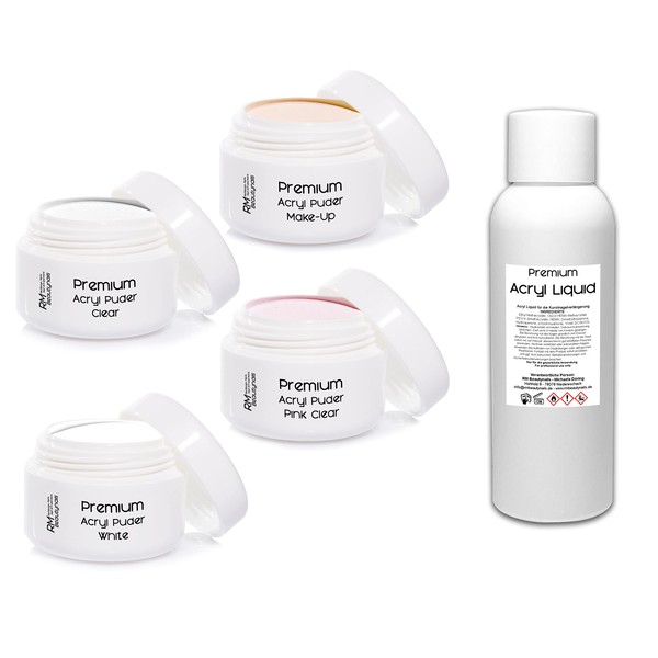 4 x 20 g Acrylic Powder Set, 1 x 100 Ml Liquid - Clear - White - Pink - Apricot Powder, Studio Quality