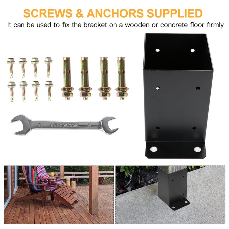 • 【EASY INSTALLATION】-It allows easy installation on 4x4 wood posts on existing concrete. (actual 3.6"x 3.6" dry post on market) on existing concrete with 1/2-Inch diameter anchors, wood post are NOT included