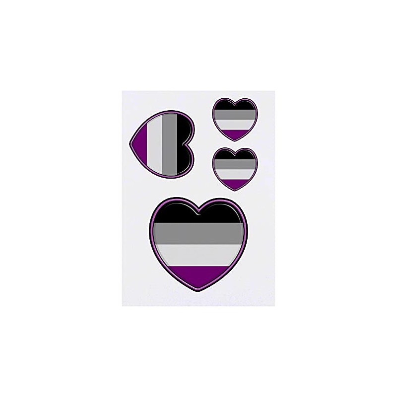 4 x 'Asexual Pride Heart' Temporary Tattoos - Water Resistant, Skin-Safe, Non-Toxic Transfers, Mixed Sizes (TO00043755)