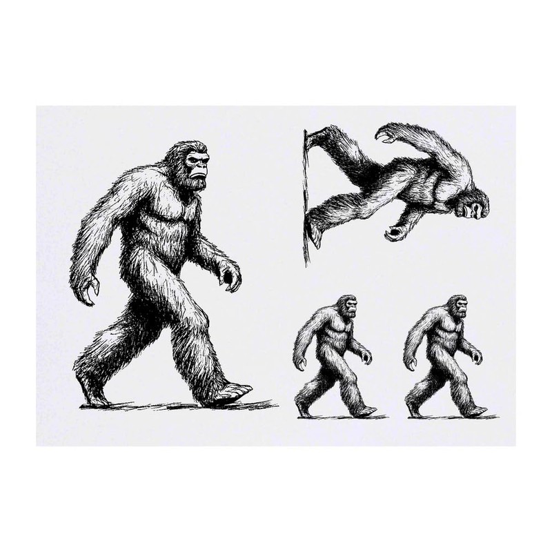 4 x 'Bigfoot Walking' Temporary Tattoos - Water Resistant, Skin-Safe, Non-Toxic Transfers, Mixed Sizes (TO00082798)