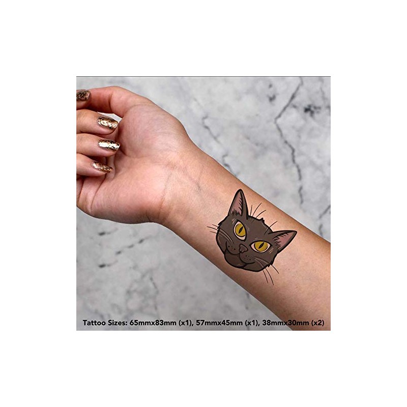 4 x 'Black Cat' Temporary Tattoos - Water Resistant, Skin-Safe, Non-Toxic Transfers, Mixed Sizes (TO00035495)