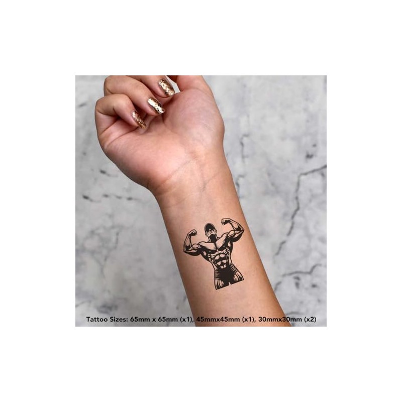 4 x 'Bodybuilder Posing' Temporary Tattoos - Water Resistant, Skin-Safe, Non-Toxic Transfers, Mixed Sizes (TO00074304)