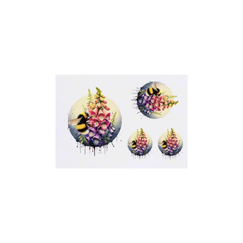 4 x 'Bumblebee & Foxglove' Temporary Tattoos - Water Resistant, Skin-Safe, Non-Toxic Transfers, Mixed Sizes (TO00073918)