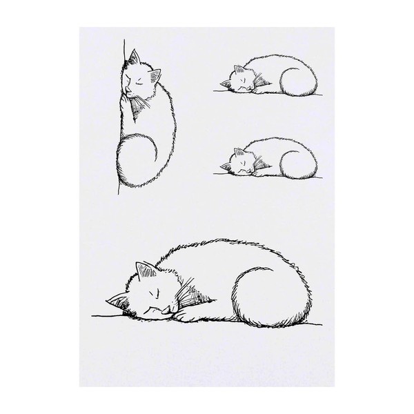 4 x 'Cat Napping' Temporary Tattoos - Water Resistant, Skin-Safe, Non-Toxic Transfers, Mixed Sizes (TO00075026)