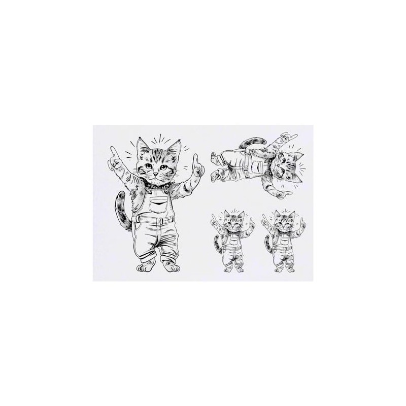 4 x ' Cat Wearing Overalls' Temporary Tattoos - Water Resistant, Skin-Safe, Non-Toxic Transfers, Mixed Sizes (TO00073196)