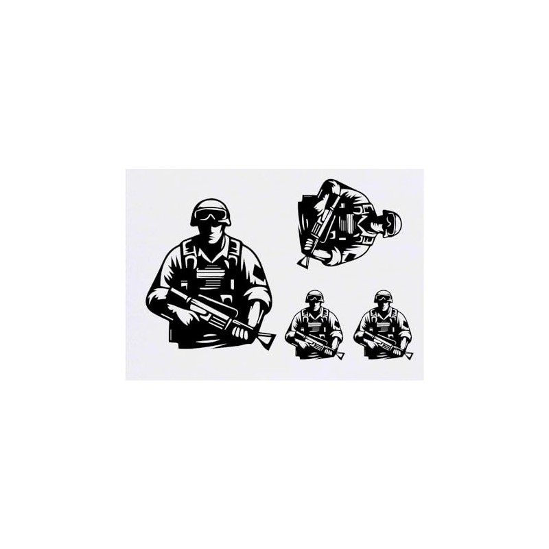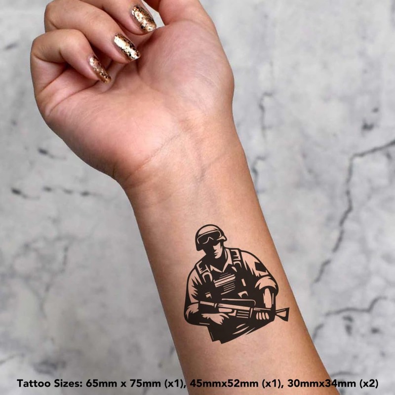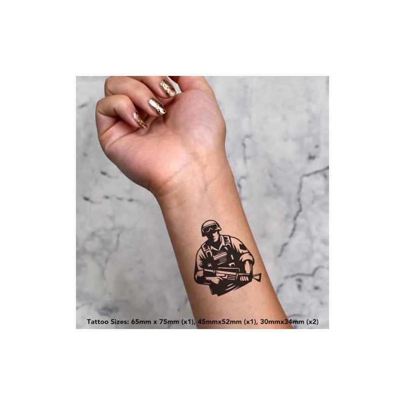 4 x 'Combat Soldier' Temporary Tattoos - Water Resistant, Skin-Safe, Non-Toxic Transfers, Mixed Sizes (TO00074110)