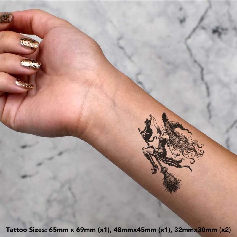 4 x 'Cool Witch On Broomstick' Temporary Tattoos - Water Resistant, Skin-Safe...