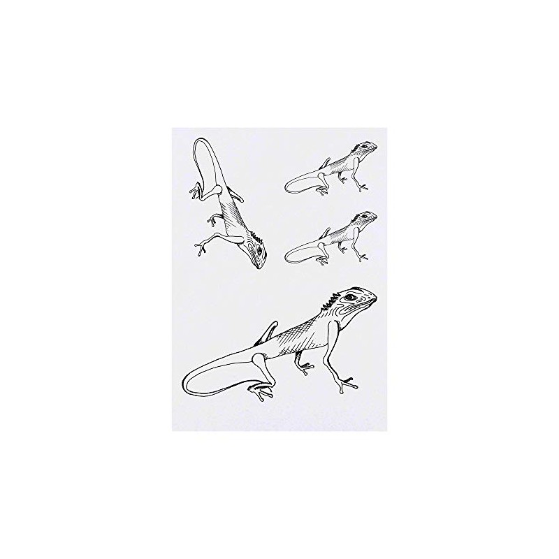 4 x 'Curious Lizard' Temporary Tattoos - Water Resistant, Skin-Safe, Non-Toxic Transfers, Mixed Sizes (TO00009656)