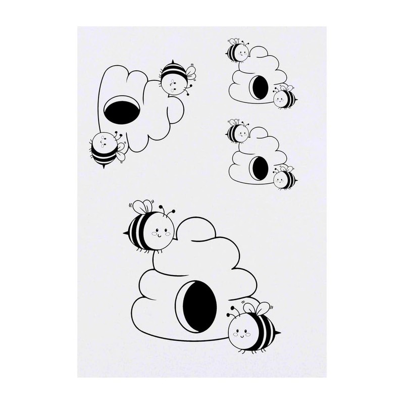 4 x 'Cute Bees & Hive' Temporary Tattoos - Water Resistant, Skin-Safe, Non-Toxic Transfers, Mixed Sizes (TO00083300)